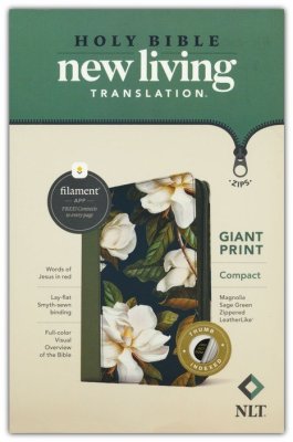 NLT Compact Bible, Filament-Enabled Edition, Giant Print–soft leather-look, magnolia sage green (indexed) with zipper